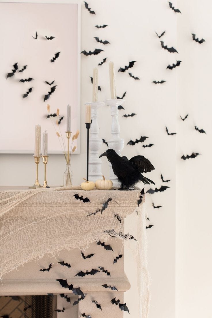 I love the way these little paper or plastic moths and bats look scattered around a mantle or other styled area.