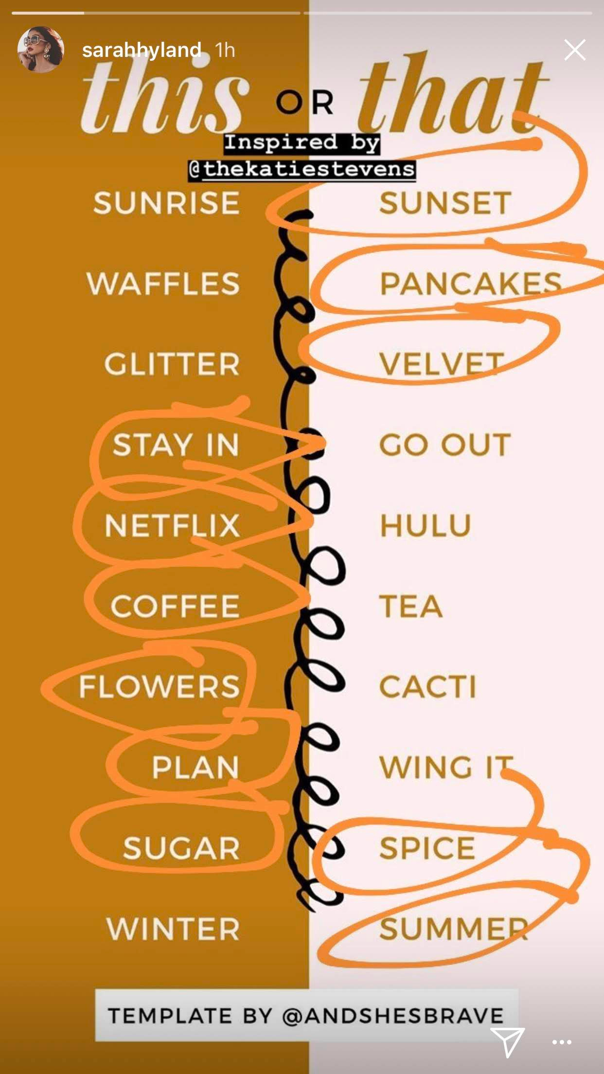 Virality is a slippery beast, and the more I try to grasp on to it, the faster it slithers away. Like most social media trends, the story template frenzy is short lived. I desperately try in vain to keep up the momentum but it’s no use – the hype cycle has died down, and no one wants to fill out another “this or that” graphic with their pointer finger.